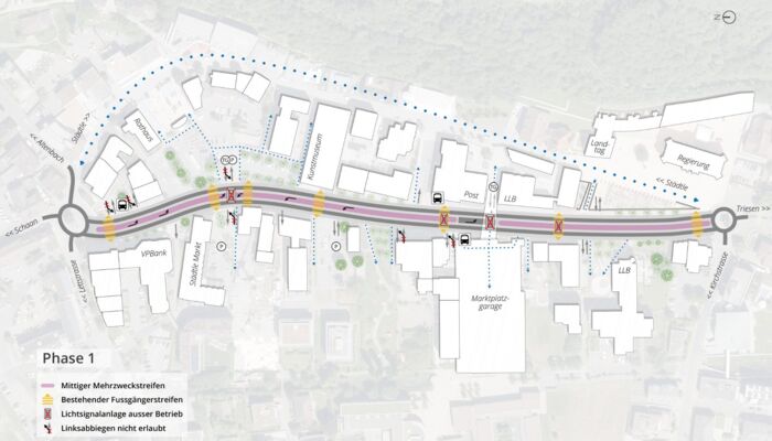 Im Rahmen eines Betriebs- und Gestaltungskonzeptes wurde für die Äulestrasse in Vaduz ein Mobilitätskorridor definiert. Der Korridor soll primär der Abwicklung des Verkehrs dienen und weitere Nutzungen wie Aufenthalt, Gewerbenutzungen, etc. zulassen. Im Zuge der Ausarbeitung wurden mehrere Varianten für die mögliche Gestaltung aufgezeigt, um den vielfältigen Ansprüchen an den Strassenraum gerecht zu werden.