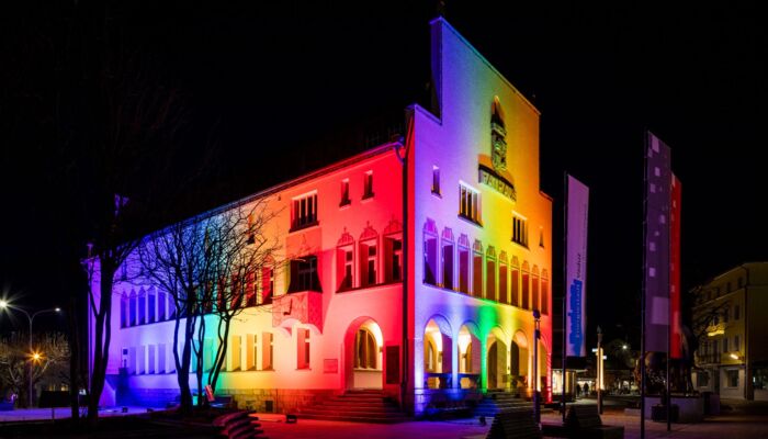 Als Zeichen der Solidarität für die Ukraine und als Statement für den Frieden und gegen den Krieg leuchtete das Rathaus Vaduz in den Regenbogenfarben des Friedens.