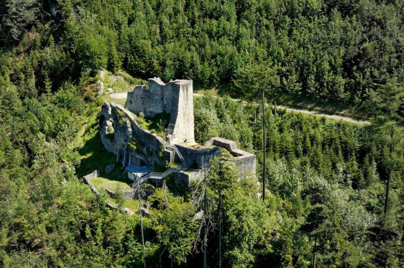 The ruins of Schalun Castle, also known as Wildschloss, are located to the north-east above Vaduz at 862 m above sea level. There are no early written sources about the castle itself, but in 1237 Knight Ulrich von Schalun was mentioned by name as a witness to a donation. However, Johann Georg Schleh(en) first wrote about the castle itself in the Ems Chronicle in 1616. The first excavations inside the ruins took place in 1939. In 1982-85, measures were taken to secure the ruins and rocks and significant areas of the castle were uncovered. In 1990-1993, further securing work was carried out on the outer bailey, the curtain wall and the building itself. Based on an analysis of the findings, it can be assumed that Schalun was built at the end of the 12th century at the latest and extended in the 13th century with the construction of further walls. The sparse finds also indicate that the castle was cleared. Based on the traces of fire, the castle was probably subsequently burnt down.