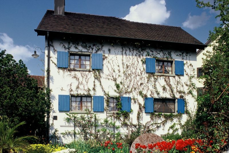 The house at Hintergass 11 was originally arranged with other buildings around the Torkelplatz. In 1879, the property was divided into two parts, No. 11 and No. 17. The barrel-vaulted cellar under Hintergass 11 can be dendrochronologically dated to 1693. The parlor has a baroque appearance. There is a ribbed ceiling in the parlor. The house contains a green-glazed tiled stove with an inscription indicating 1806 as the year of construction. The stove is dated 1732.