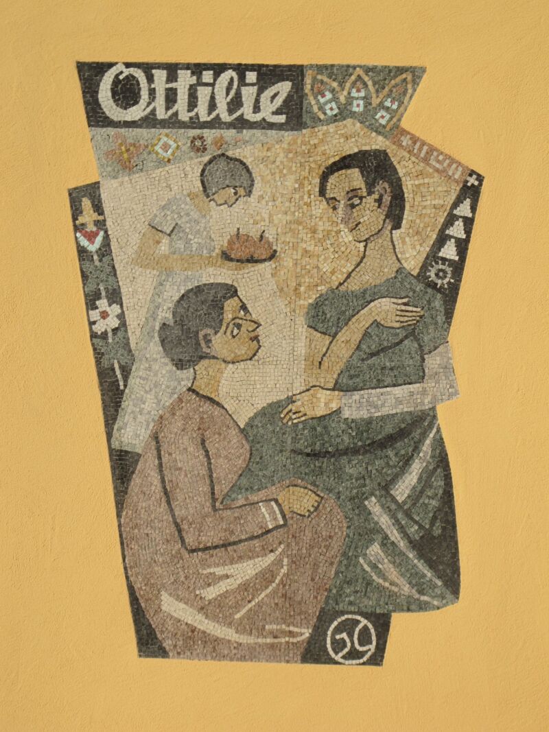 Born in Beringen/SH in 1915, Eugen Schüepp trained as a baker and confectioner in his father's tradition during his first apprenticeship and took over his parents' business. He followed his passion early on with an additional teaching position at the trade school in Schaffhausen, which earned him the title of "painting master baker" in professional circles. Finally, in 1959, he made the decision that had long been prepared and forced upon him by his talent and inclination: he gave up the material security of the profession he had first learned in order to pursue his true vocation. An outward sign of this was his move to Liechtenstein, his adopted home, where he built a house with a studio and subsequently lived as a freelance artist and real estate teacher. Eugen Schüepp was one of Liechtenstein's outstanding, but rather lesser-known artists of the 20th century. On his 100th birthday, two of his mosaics were placed under a preservation order. The "Ottilie" mosaic made of natural stone was installed at the parental home of Eugen Schüepp's daughter after being relocated. The mosaic depicts a song of praise for intellectual conversation between people, but above all for the type who listens with their whole soul. In addition to the "Ottilie" mosaic, the "Mühleholz Procession" mosaic was also placed under a preservation order. It depicts the "Pestkappile", which had to make way for road construction in 1971 and was moved to the Schaaner Dux forest.