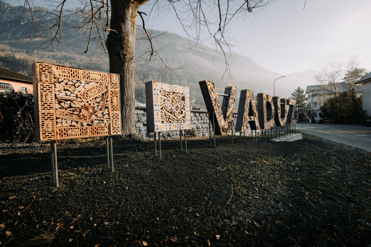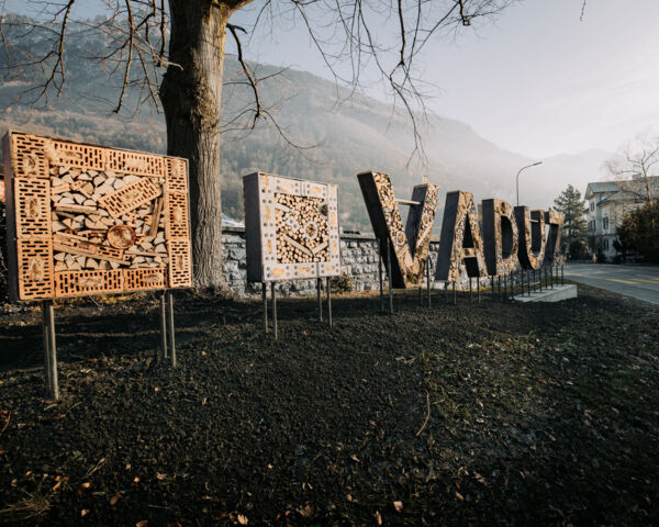 Since yesterday, a new insect hotel in the shape of the Vaduz logo has adorned the northern entrance to the municipality of Vaduz. This special project is a strong symbol of the municipality's commitment to preserving biodiversity and was realized in collaboration with the "Vadoz summt" initiative.