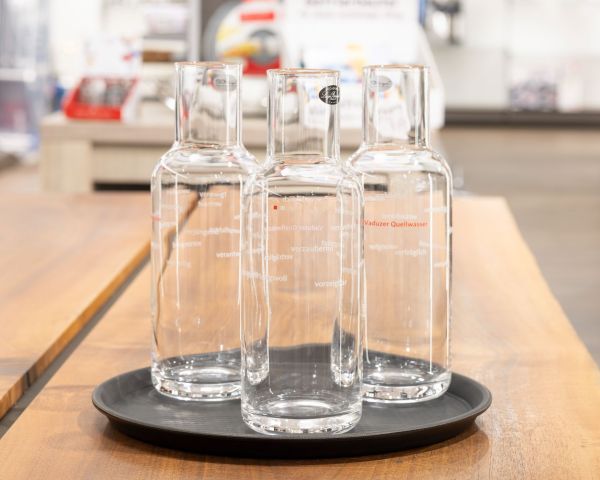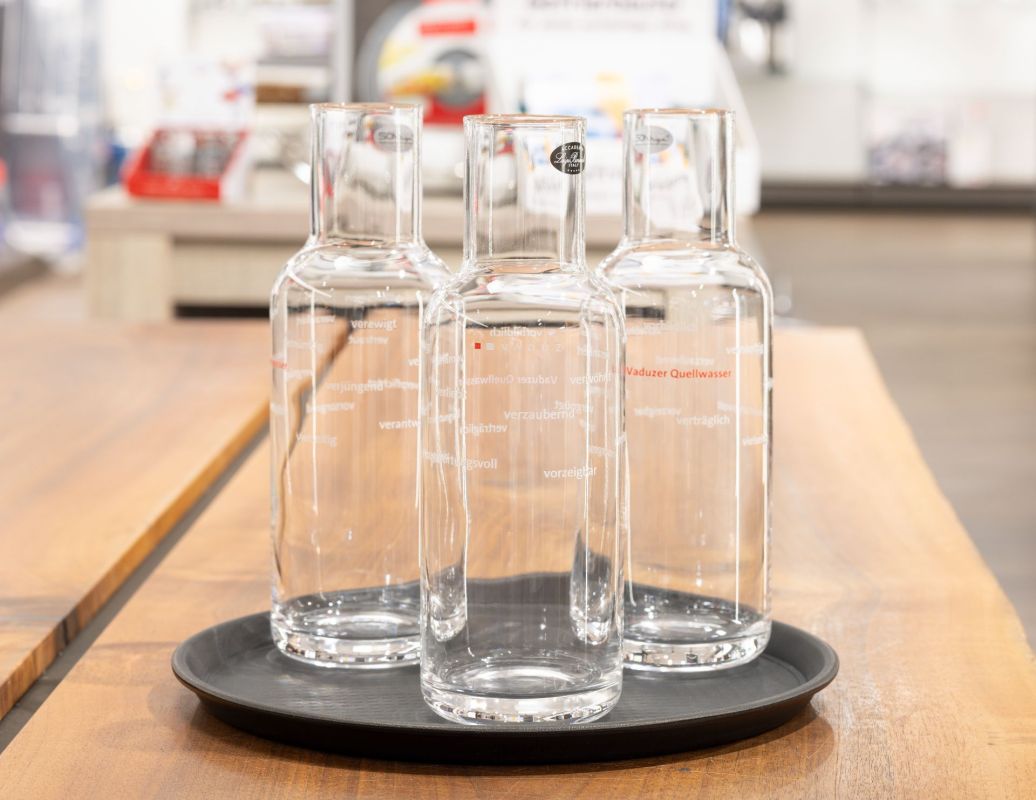 The municipality of Vaduz has excellent drinking water. Anyone who would like to serve Vaduz water in style at home or give Vaduz-designed carafes as gifts can purchase them from Greber AG in Herrengasse and at the Liechtenstein Center.