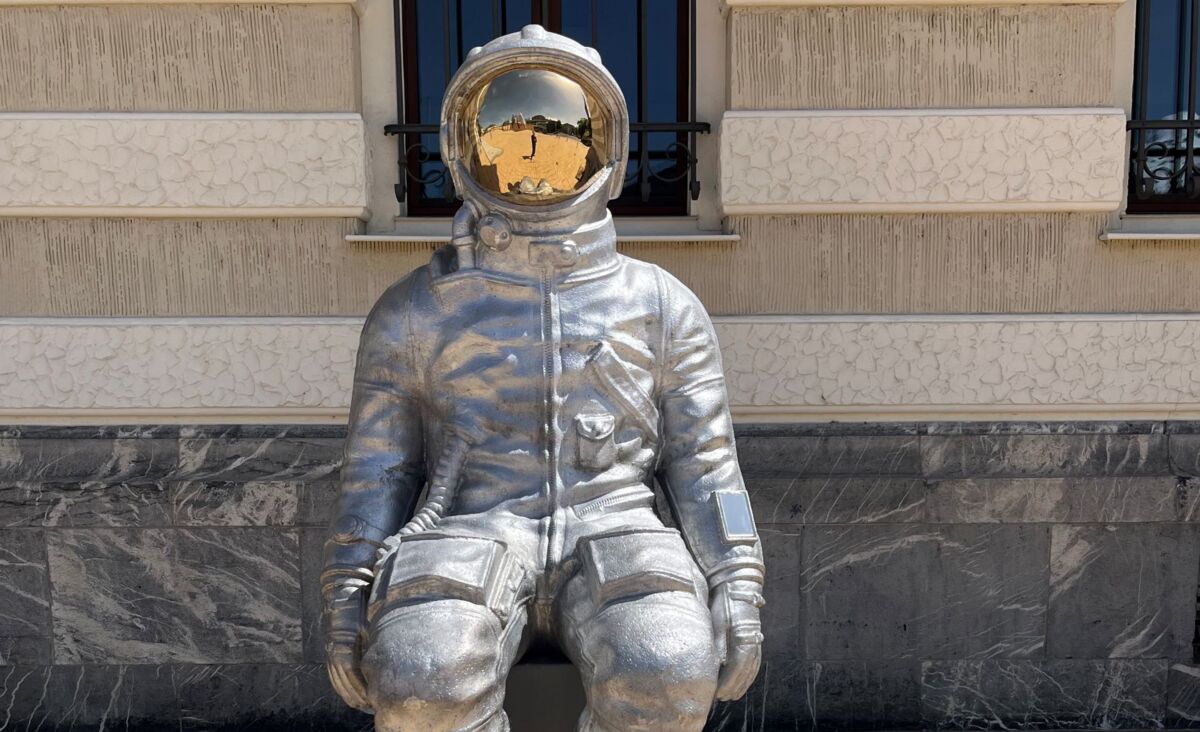 Max Grüter's works are exhibited internationally and are considered innovative, limited and groundbreaking. The sculpture "Raumableiter" bears witness to these characteristics. The figure is made of cast aluminum, the helmet visor is made of gold-plated bronze. The artistic statement plays with man's idea of space and protection as well as his perception of his environment. Max Grüter demonstrates how people can feel in an increasingly complex and anonymous world. The high-tech shell of a spacesuit protects the body from external influences on the one hand, while on the other, silence, isolation and abandonment set in inside. The sculpture can also be seen as a metaphor for human ambition and the exploration of the unknown. There is also a connection to Vaduz: A moon rock from the Apollo 11 mission with a Liechtenstein flag is on display in the treasury of the National Museum, a gift from the then American President Nixon. The National Museum also has astrophilately in the form of letters written, signed and stamped in various space stations.