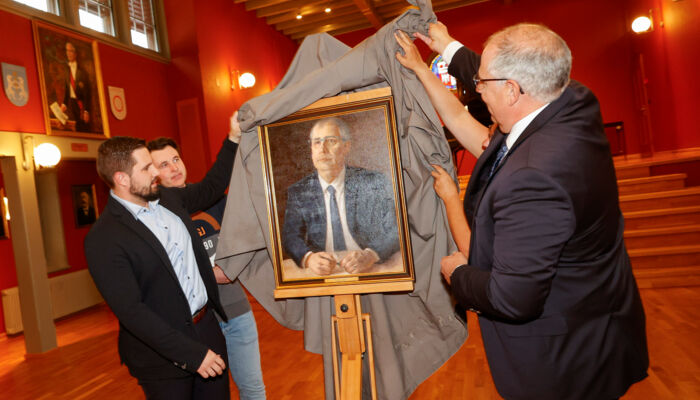 A portrait of a former mayor has been added to the gallery of ancestors in Vaduz Town Hall. Yesterday, Mayor Florian Meier and former mayor Manfred Bischof unveiled the painting by artist Giuliano Scherini at a small ceremony.
