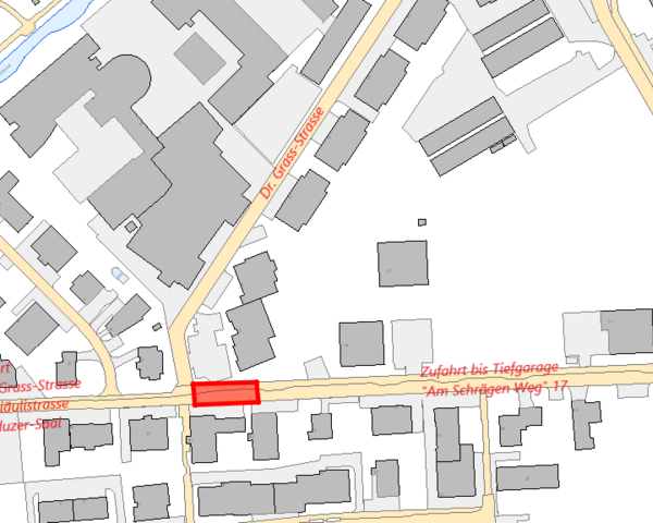 Kürzlich wurde mit den Tiefbauarbeiten bei der Baustelle Dr. Grass-Strasse gestartet. Teil von diesem Projekt ist auch die Umgestaltung des Knotens "Am Schrägen Weg" / Dr. Grass-Strasse. Dieser Abschnitt wird als Erstes umgesetzt. In der Strasse werden Fernwärmeleitungen verlegt und diverse Anpassungen an den Werkleitungen vorgenommen. Aus diesem Grund ist die Durchfahrt der Strasse "Am Schrägen Weg" gesperrt. Die Liegenschaften können gemäss Planausschnitt erreicht werden. Die Sperrung dauert voraussichtlich bis zum 25. Mai.