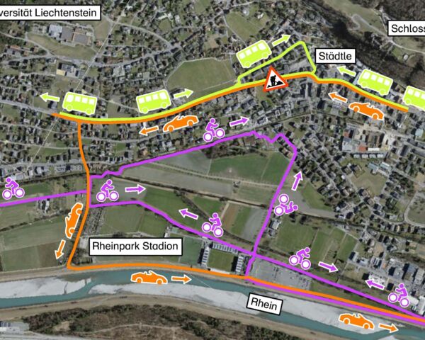 Die Vorbereitungsarbeiten an den Lagerplätzen und an der Umfahrungsstrecke Rheindamm beginnen am Donnerstag den 25. April 2024. Die Hauptarbeiten an der Herrengasse starten am Montag, den 13. Mai 2024. Ab diesem Zeitpunkt wird das bereits kommunizierte Verkehrsregime in Betrieb genommen. Der öffentliche Busverkehr in Fahrtrichtung Schaan wird einspurig durch die Baustelle geführt. In Fahrtrichtung Triesen wird dieser über die Egertastrasse umgeleitet. Der übrige Verkehr in Fahrtrichtung Schaan wird ebenfalls einspurig durch die Baustelle geführt. In Fahrtrichtung Triesen wird der Verkehr über die Achse Lochgass - Rheindamm umgeleitet.