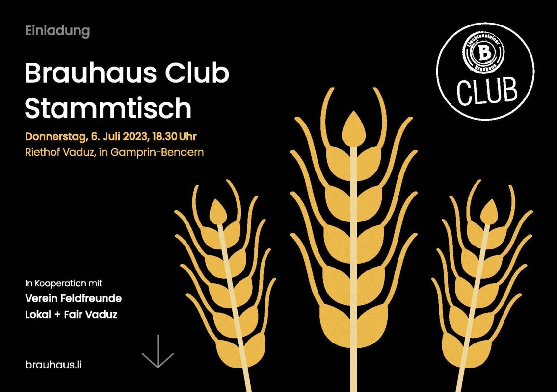 Am Donnerstag, 6. Juli 2023 um 18.30 Uhr findet das Braugerstenfest in Kooperation mit der Gemeinde Vaduz-Initiative lokal+fair und dem Verein Feldfreunde statt. Dabei wird das Braugerstenfeld besichtigt und dann gibt es einen Apéro mit Brauhaus Bieren. Treffpunkt ist beim Riethof Vaduz in Gamprin-Bendern.