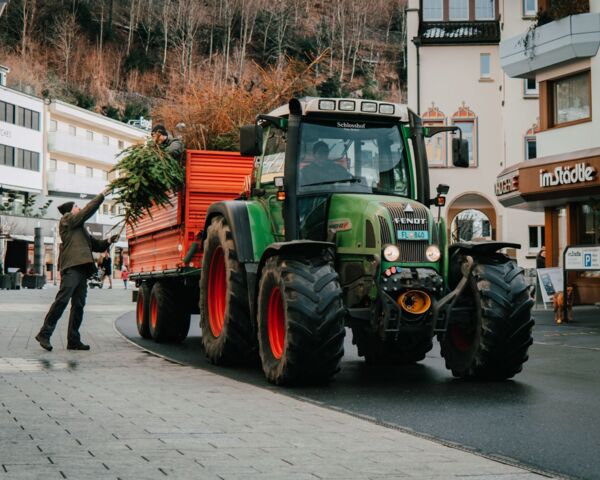 Bitte die Bäume bis Mittag gut sichtbar am Strassenrand bereitstellen. Danke.