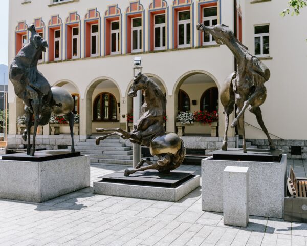 Seit dem Sommer 2004 stehen die Bronzekunstwerke TRE CAVALLI vor dem Rathaus Vaduz und sind im Besitz der Gemeinde. Sie zieren die Hauptseite des Gebäudes und prägen mit ihrer imposanten Erscheinung das Stadtbild.