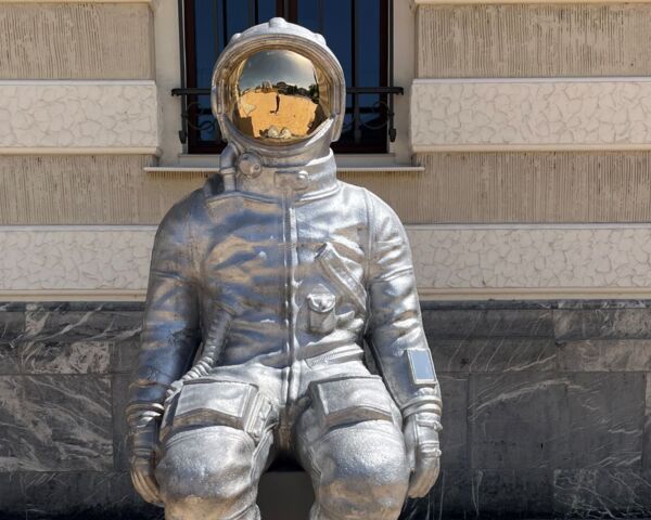 Die Werke von Max Grüter werden international ausgestellt und gelten als innovativ, limitiert und wegweisend. Die Skulptur „Raumableiter“ zeugt von diesen Merkmalen. Die Figur ist gefertigt aus Aluguss, das Helmvisier besteht aus vergoldeter Bronze. Die künstlerische Aussage spielt mit der Vorstellung des Menschen von Raum und Schutz sowie dessen Wahrnehmung auch in Bezug auf seine Umwelt. Max Grüter führt vor Augen, wie sich der Mensch in einer immer komplexeren und anonym werdenden Welt fühlen kann. Die hochtechnisierte Hülle eines Raumanzuges schützt den Körper einerseits vor äusseren Einflüssen, andererseits stellt sich im Inneren Stille, Isolation und Verlassenheit ein. Zudem kann die Skulptur als Metapher für menschliche Ambitionen und die Erforschung des Unbekannten gesehen werden. Auch die Beziehung zu Vaduz ist gegeben: In der Schatzkammer des Landesmuseums wird ein Mondgestein der Apollo 11-Mission mit Liechtensteiner Fahne ausgestellt, ein Geschenk des damaligen amerikanischen Präsidenten Nixon. Ebenso verfügt das Landesmuseum über Astrophilatelie in Form von Bordpost-Briefen, die in unterschiedlichen Raumstationen geschrieben, signiert und abgestempelt wurden.