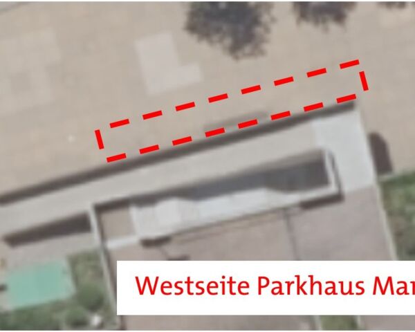 Von 24. April bis 28. April 2023 finden an der Westseite des Parkhaus Marktplatz Sondierungsarbeiten statt, da festgestellt wurde, dass sich im darunter liegenden Giessengewölbe Schadstellen befinden. Diese Arbeiten sind notwendig, um mögliche Sanierungsvarianten auszuarbeiten.