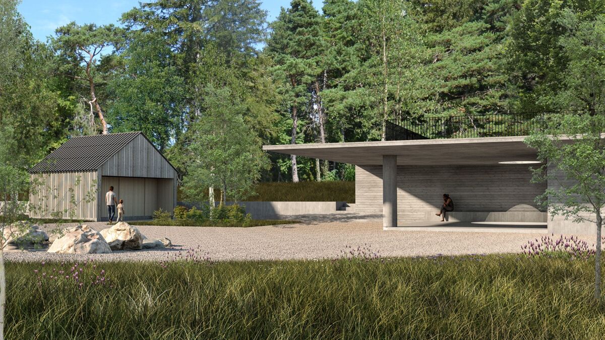 Ein respektvoller Umgang mit der Vergangenheit prägen die sanfte Sanierung eines noch bestehenden Waldhotelkellers. Der Keller erhält zudem einen überdachten Vorbereich, der zum Zusammenkommen einlädt und auch vor einem plötzlichen Wolkenbruch Schutz bietet. Damit soll die Kollektiverinnerung des Waldhotels in der Gegenwart und Zukunft neu verankert werden. Die bestehende Toilettenanlage wird komplett erneuert und als praktisches, kleines Servicegebäude ausgebaut.