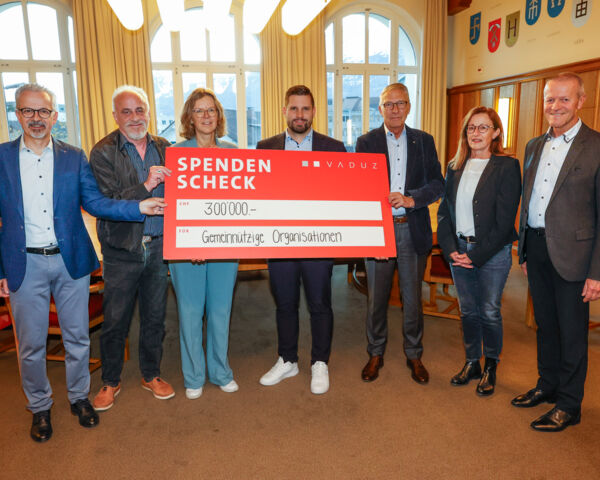 Auch in diesem Jahr hat der Gemeinderat im Rahmen der Weihnachtsaktion 2024 nicht nur alle Vaduzer Haushalte, sondern auch verschiedene wohltätige Organisationen aus Liechtenstein unterstützt. Bürgermeister Florian Meier überreichte gestern im Rathaus einen symbolischen Scheck im Gesamtwert von CHF 300'000.00 an das Liechtensteinische Rote Kreuz, die Caritas Liechtenstein, den Verein ROKJ Rheintal-Liechtenstein sowie den Verein Hilfe für Kinder in Kambodscha, Ruggell.