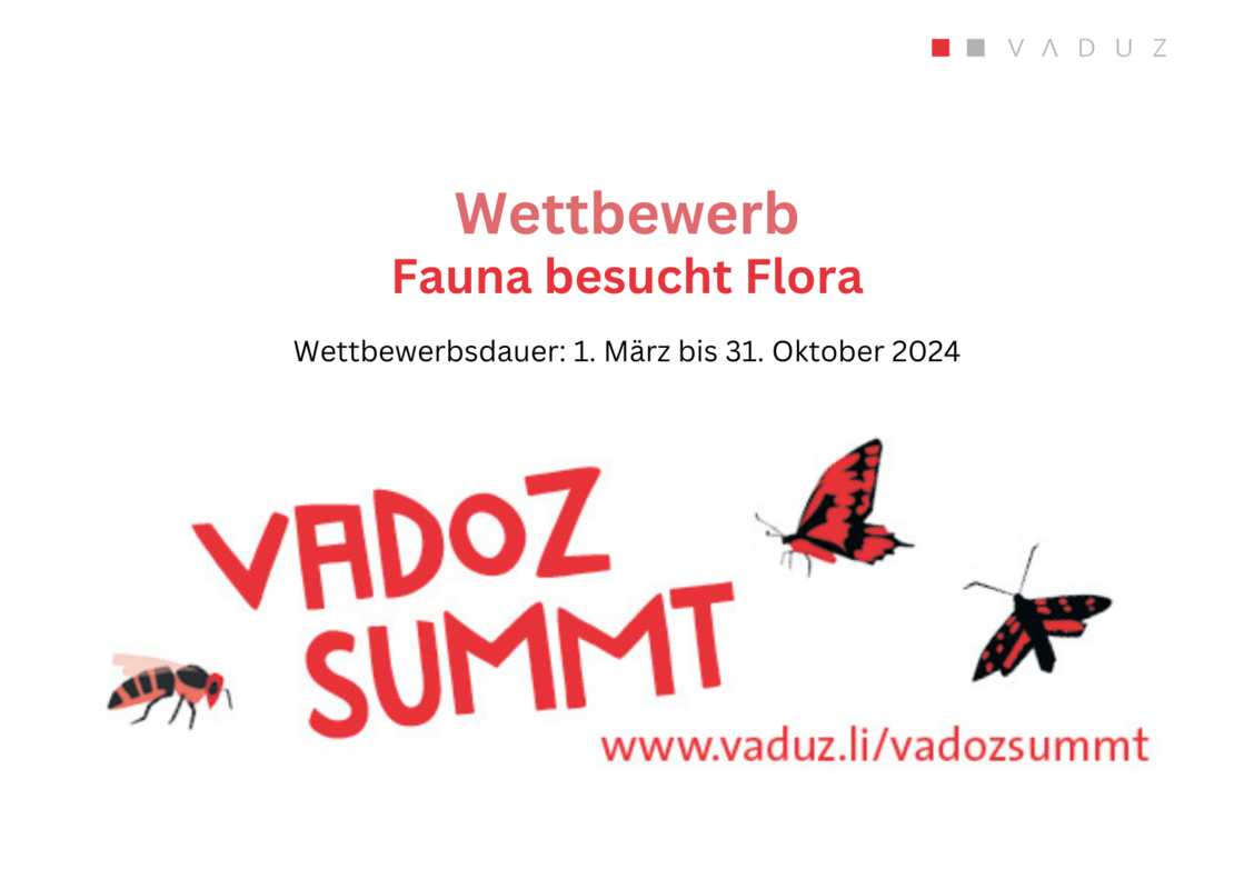 Alle Einwohnerinnen und Einwohner von Vaduz werden eingeladen, Fotos von Tieren einzusenden, die zu "ihren" Pflanzen auf Besuch kommen. Beispielsweise von Schmetterlingsraupen, die von einer Brennnesselpflanze leben (wichtigste Raupenfutterpflanze).