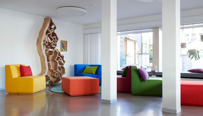 Der Jugendtreff "Camäleon" im Fabrikweg in Vaduz bietet den Jugendlichen Lebensräume, unterstützt die Partizipation und fördert die Integration. Das Angebot umfasst einen Bandraum, ein Tonstudio, eine Eventhalle, ein Videostudio, einen Werkraum und einen Barbereich mit Chillzone.