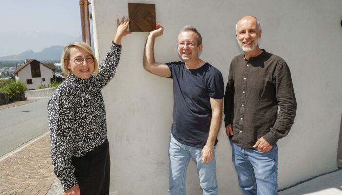 Die Liegenschaft Hofstätte Hintergass 35 und 37 in Vaduz steht seit 1993 unter Denkmalschutz und gehört zu den wichtigsten und ältesten Bauobjekten in Vaduz. Nun wurde am Gebäude die Plakette «Kulturgut» angebracht im Beisein von Denise Hug, Amt für Kultur – Denkmalpflege, Martin Laukas, Leiter Liegenschaften der Gemeinde Vaduz und Architekt Beat Burgmaier.