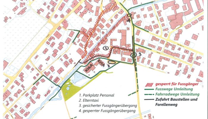 Derzeit werden beim Knoten "Am Schrägen Weg" / Dr. Grass-Strasse Fernwärmeleitungen verlegt und Anpassungen an den Werkleitungen vorgenommen. Zudem soll dieser Knoten umgestaltet werden. Bis voraussichtlich 25. Mai 2022 ist die Durchfahrt "Am Schrägen Weg" gesperrt.