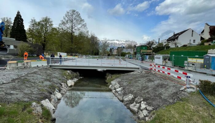 Damit die geplante Sanierung der Strasse Bangarten wie bereits angekündigt durchgeführt werden kann, wurde beim Giessen im Bereich Kindergarten eine provisorische Baustellenbrücke errichtet. Diese wird nach der Beendigung der Bautätigkeit wieder rückgebaut und der ursprüngliche Zustand hergestellt.