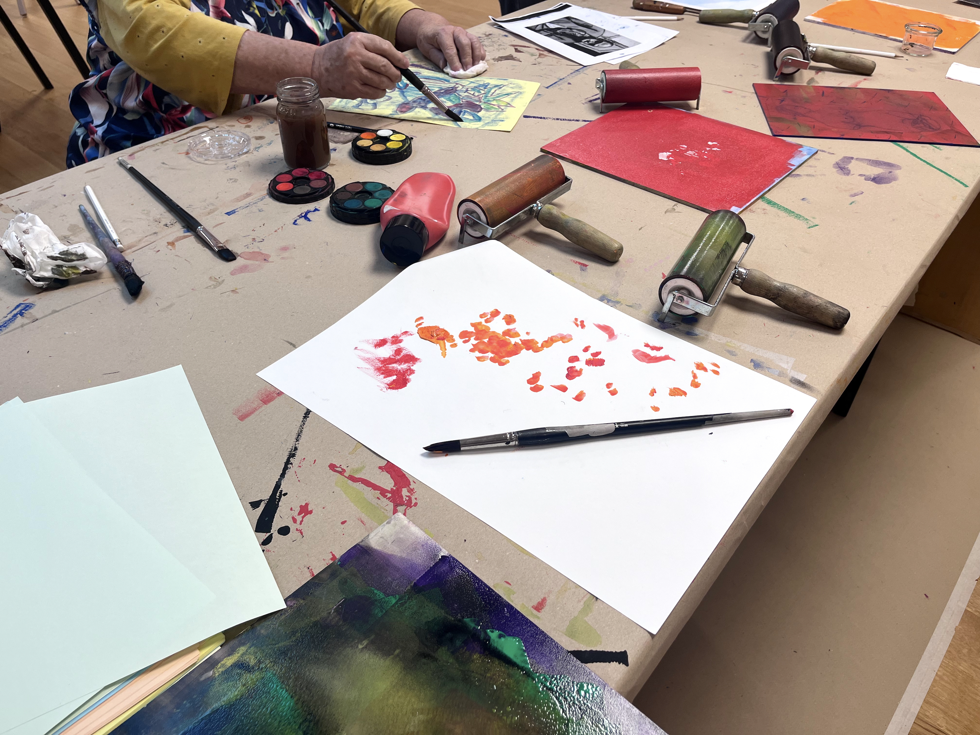 Wir sehen uns einzelne Kunstwerke in den aktuellen Ausstellungen genau an und tauschen uns darüber aus. Gemeinsam mit der Künstlerin Beate Frommelt werden die Teilnehmenden danach im Atelier selbst aktiv. Zu jedem Termin probieren wir etwas anderes aus. Vorkenntnisse sind nicht erforderlich. Jede und jeder ist willkommen! Wir sind offen für alle Altersgruppen ab dem 14. Lebensjahr und maximal 10 Personen. Beate Frommelt ist erfahren in der Arbeit mit Jugendlichen, mit Erwachsenen und mit Menschen, die an Demenz erkrankt sind. Uhrzeit 14.00–16.30 Uhr Im Rahmen des freien Mittwochs ist das Angebot kostenfrei. Die Veranstaltungen finden in Zusammenarbeit mit «Zemma tua – Senioren gemeinsam aktiv» statt. Koordiniert wird dieses Programm von Demenz Liechtenstein. Die Teilnehmendenzahl ist beschränkt, wir bitten um Anmeldung unter www.kunstmuseum.li