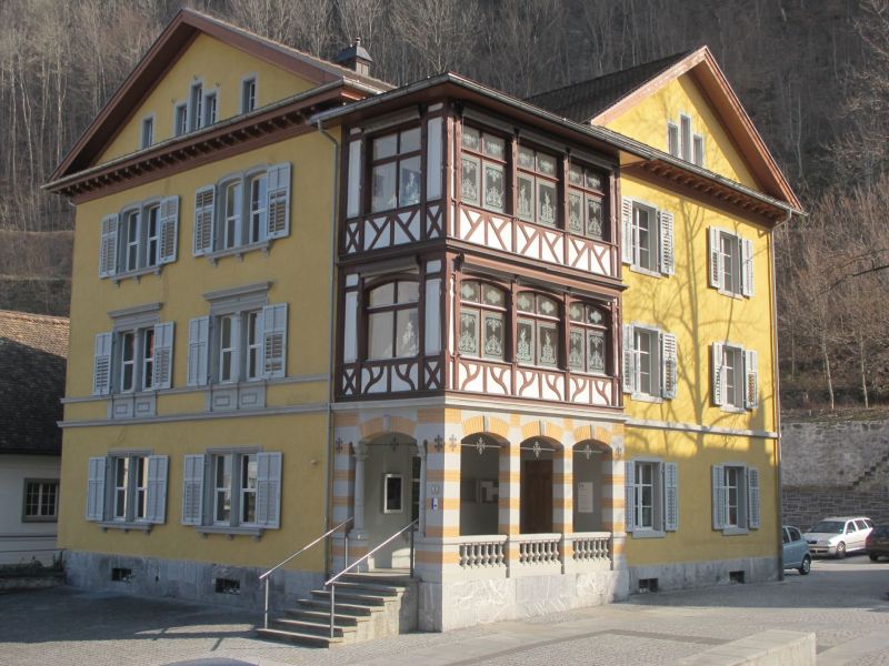 Das ehemalige Wohnhaus mit Praxisräumen, das sogenannten «Schädlerhaus», wurde 1872/73 von Seraphin Pümpel erbaut. An der Stelle des «Schädlerhauses» stand bis 1872 der sogenannte «Tschaggaturm», ein herrschafltiches Turmhaus mit Anbauten des späten 18. und frühen 19. Jahrhunderts. 1869 übernahm Rudolf Schädler die Räume des «Tschaggaturm», in denen sich die Arztpraxis seines Vaters Karl Schädler befand. Als Rudolf 1872 begann mit seinem Bruder Albert Schädler zu praktizieren, wurde ein Neubau mit Praxisräumen und Wohnungen notwendig. Somit musste der Turm einem Neubau im historisierenden Stil weichen. Das Gebäude besteht aus zwei rechtwinkligen aneinanderstossenden dreigeschossigen Baukörpern mit Giebeldächern. Der klassizistische Bau präsentiert sich mit einer symmetrischen Gliederung der Fassaden. 1894 wurden die offenen Terrassen im 2. und 3. Obergeschoss in eine verglaste Veranda umgebaut. 1994/95 wurde das Gebäude umfassend saniert und die Innenräume modernisiert.